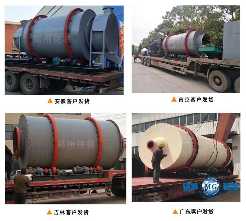 3、烘干机套筒设计、单位容积蒸发强度大,热能利用率高;特殊的热工设计理念,消除风洞热量损耗,增加热交换面积和单位容积蒸发强度,筒体自我保温热效率高达70%以上(传统单筒烘干机热效率仅为35%)比传统单筒烘干机提高热效率达35%以上,节能效果极佳。。