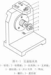 对刀元件和引导元件是用于确定夹具相对于刀具的位冒或引导刀具方向的元件,如图6—1中的钻套1、钻模板2。