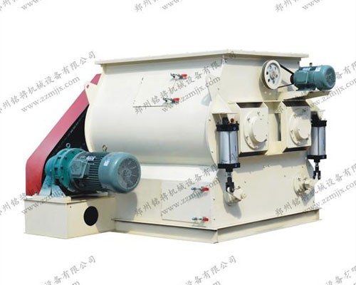 我公司生产的无重力双轴桨叶混合机,主轴转速29~53r/min,飞刀1440r/min,有效分散各种纤维,根据纤维的不同,混合时间控制在3-5分钟以内,混合效率、均匀度比犁刀混合机更佳,均匀度可达1/10000;卸料采用气动大开门(可自锁),自动卸料可在5秒钟内完成;飞刀采用锰钢制作;采用链条传动,链轮全部锻轧制作,可在满负荷状态下启动;桨叶、飞刀片磨损可更换,整机不报废。是我公司在传统双轴混合机的基础上针对干混砂浆生产改进而来的。无重力混合机主要用于抗裂砂浆,保温砂浆,粘结砂浆,抹面砂浆,地坪砂浆等干粉砂浆及中高档腻子粉的生产。